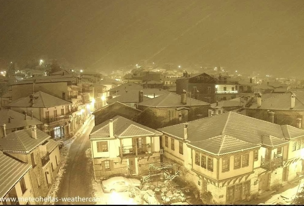 Στα λευκά ντύθηκε για ακόμη μία φορά η Αρναία, η κωμόπολη του δήμου Αριστοτέλη. Από αργά το βράδυ το χιόνι έπεφτε συνεχώς, με αποτέλεσμα το τοπίο μέσα σε λίγη ώρα να έχει γίνει κάτασπρο και πανέμορφο, με τα αρχοντικά σπίτια να κλέβουν έτσι χιονισμένα την παράσταση!