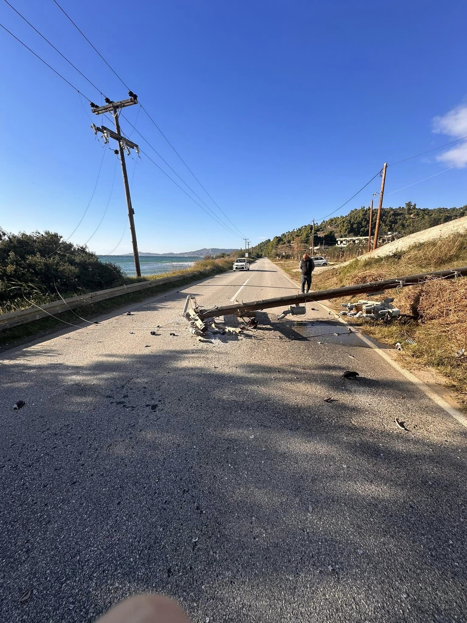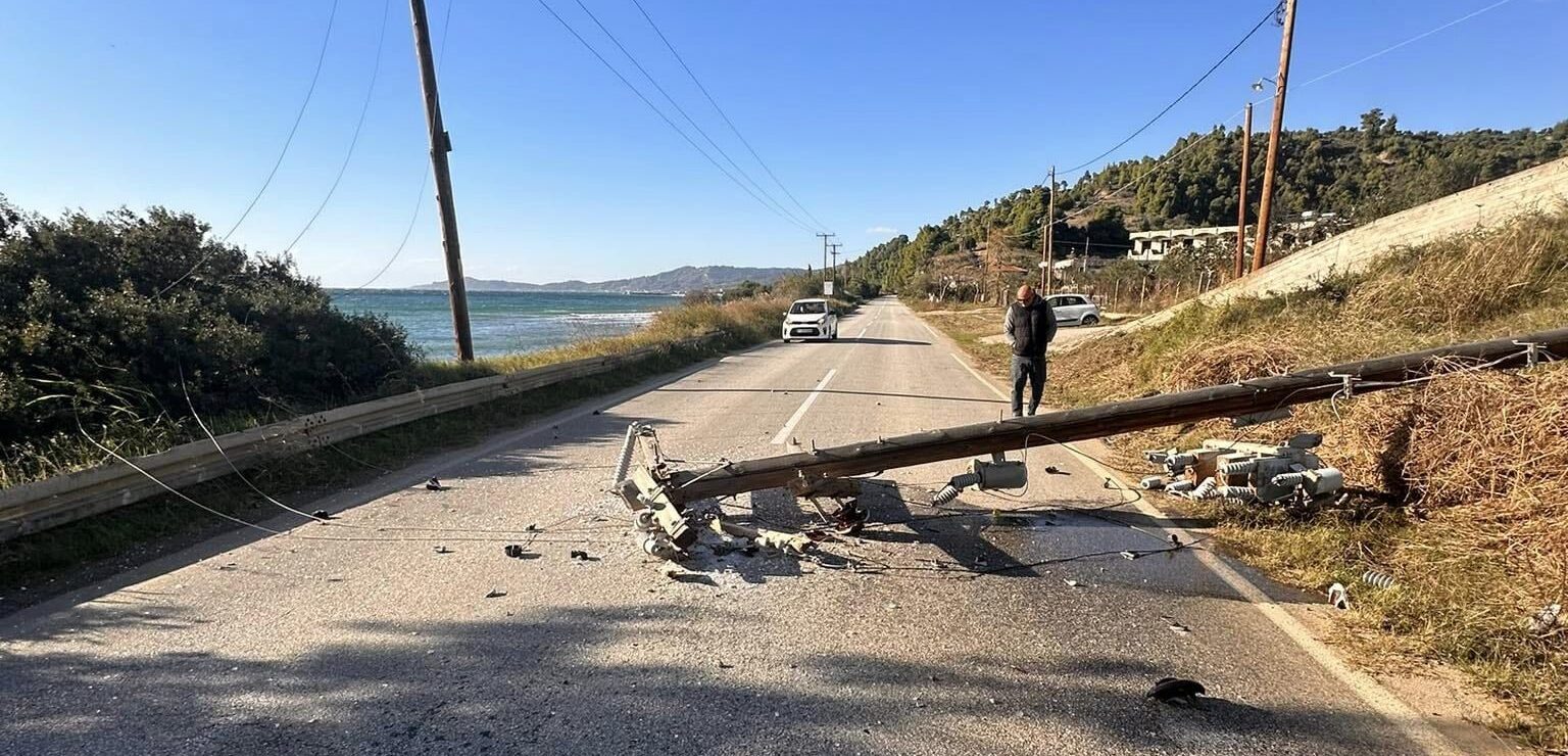 Πτώση κολώνας της ΔΕΗ στην περιοχή Φράμα της Νέας Σκιώνης σημειώθηκε νωρίς το απόγευμα του Σαββάτου, από ισχυρούς ανέμους.