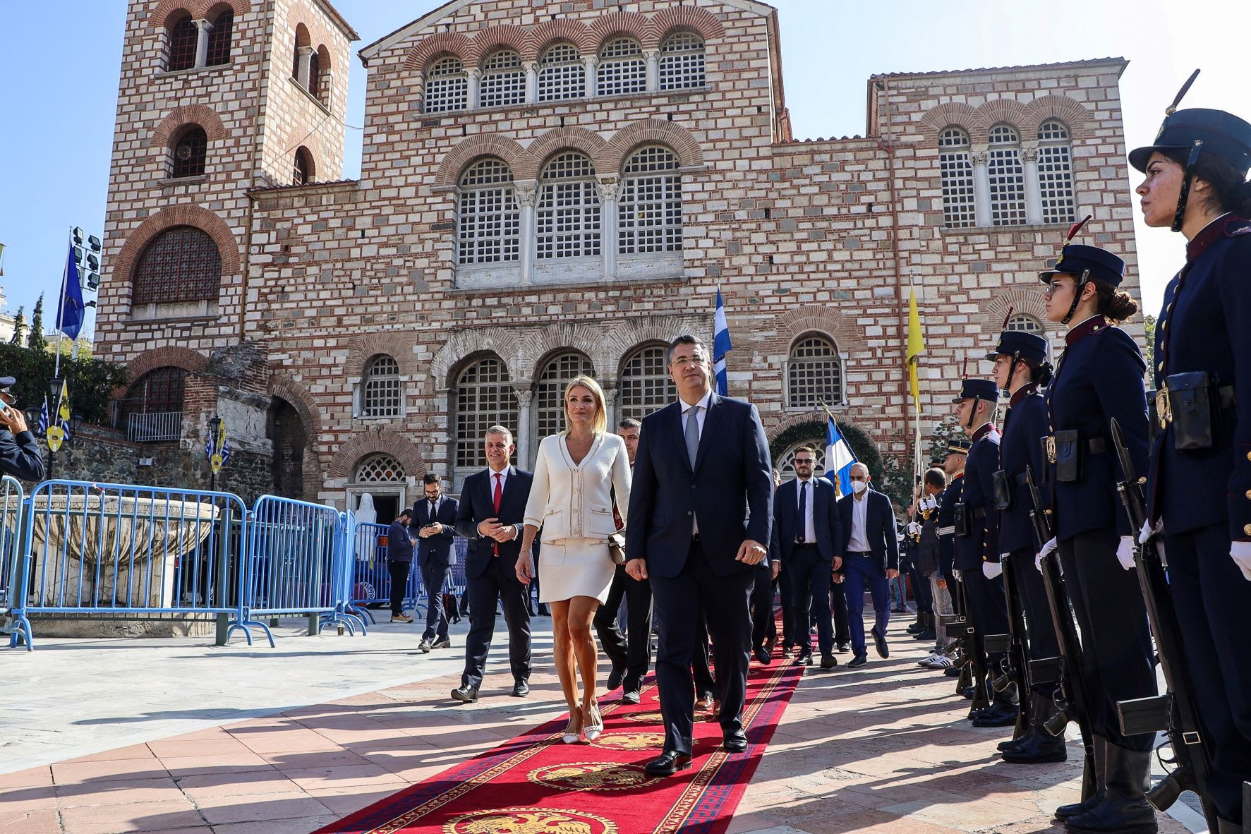 Στην επίσημη δοξολογία για τη γιορτή του Πολιούχου της Θεσσαλονίκης Αγίου Δημητρίου και την επέτειο των 110 χρόνων από την Απελευθέρωση της πόλης, που τελέστηκε στον Ιερό Ναό Αγίου Δημητρίου, χοροστατούντος του Μητροπολίτη Θεσσαλονίκης κ.κ. Άνθιμου, παρουσία της Προέδρου της Δημοκρατίας Κατερίνας Σακελλαροπούλου, παρέστη σήμερα ο Περιφερειάρχης Κεντρικής Μακεδονίας Απόστολος Τζιτζικώστας.