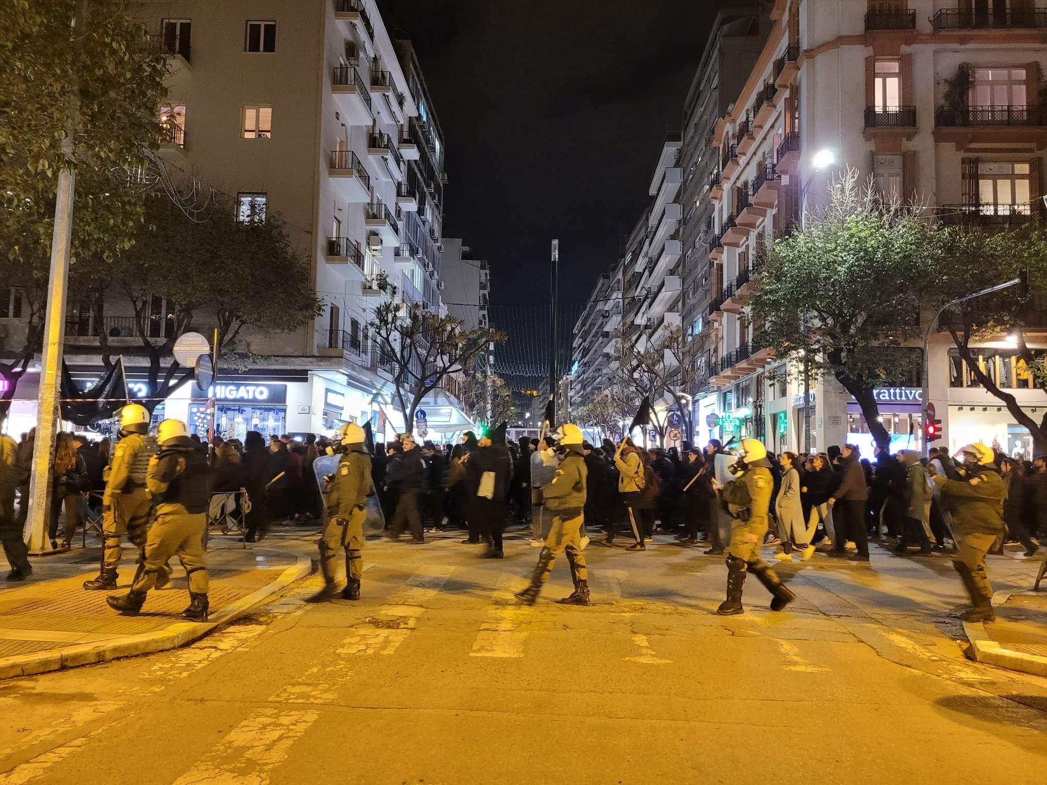 Πορεία πραγματοποιείται αυτή την ώρα στο κέντρο της πόλης της Θεσσαλονίκης για τα 14χρόνια από την δολοφονία του Αλέξανδρου Γρηγορόπουλου που έπεσε νεκρός από ειδικό φρουρό, με το κλίμα να είναι τεταμένο μετά τον πυροβολισμό στο κεφάλι του 16χρονου στη Θεσσαλονίκη χθες, επίσης από όπλο αστυνομικό.