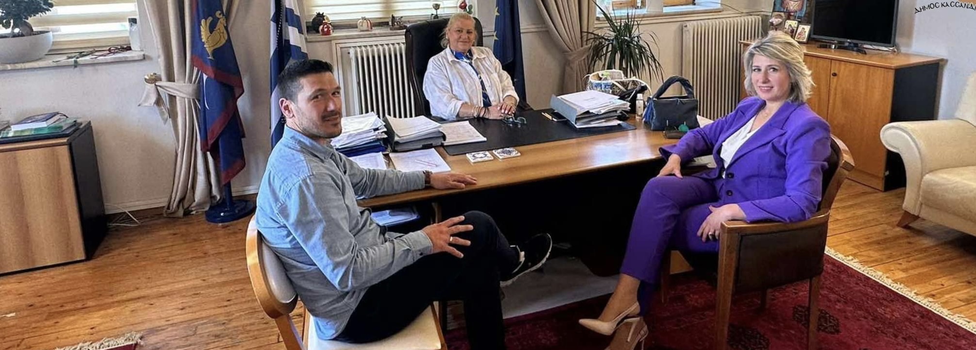 Η δήμαρχος Κασσάνδρας, Αναστασία Χαλκιά υποδέχθηκε εχθές στο δημαρχείο την νέα αντιπεριφερειάρχη Χαλκιδικής, Κατερίνα Ζωγράφου, και την ενημέρωσε για όλα τα έργα που βρίσκονται σε εξέλιξη με τον αντιδήμαρχο τεχνικών έργων Ηρακλή Λειβαδιώτη και για όσα έχουν προγραμματίσει.