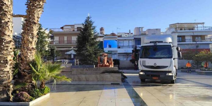 Σε πλήρη εξέλιξη βρίσκονται από το πρωί οι προετοιμασίες στην κεντρική πλατεία των Νέων Μουδανιών, όπου τα συνεργεία του Δήμου Νέας Προποντίδας εργάζονται εντατικά για τη φωταγώγηση του Χριστουγεννιάτικου δέντρου.