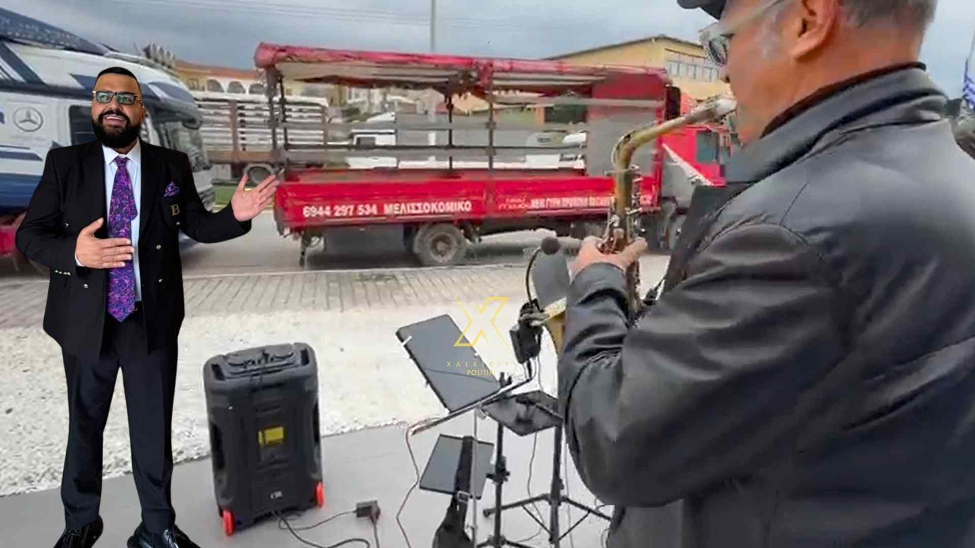 Ο Νίκος Τσερκεζίδης φρόντισε να στηθεί ζωντανή μουσική, όχι ως θέαμα, αλλά ως μια πράξη στήριξης και συμπαράστασης, με στόχο να ανεβάσει τη διάθεση, να προσφέρει μια ανάσα και να βοηθήσει τους διαμαρτυρόμενους να ξεχαστούν έστω και για λίγο από τα σοβαρά προβλήματα που αντιμετωπίζουν.