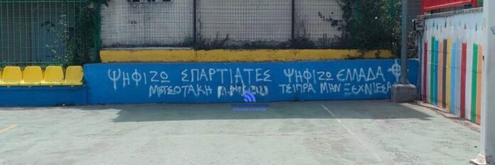 Κάποιος ή κάποια ή ακόμη και ομάδα ατόμων είχαν την ιδέα να σπάσουν καρεκλάκια και να γράψουν σε τοίχο εντός του σχολείου οπαδικά συνθήματα που μόνο τα παιδιά δεν ενδιαφέρουν.