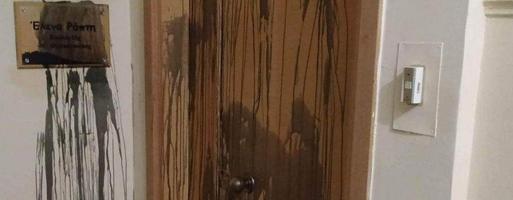 Άγνωστοι εισέβαλαν στην πολυκατοικία που στεγάζει το πολιτικό γραφείο της βουλευτή Α’ Θεσσαλονίκης με το κόμμα της ΝΔ Έλενας Ράπτη, πέταξαν μπογιές στην εξώπορτα και έγραψαν συνθήματα στον τοίχο.
