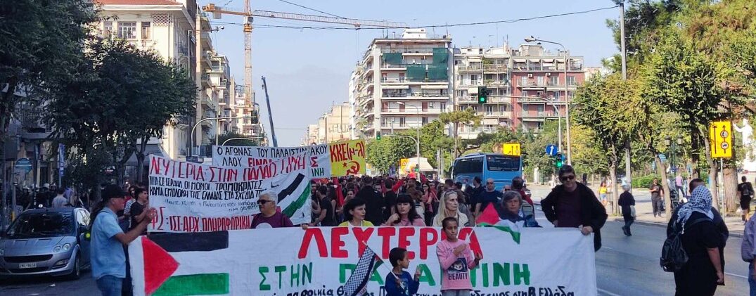 Στη δεύτερη πορεία υπέρ της Παλαιστίνης μέσα στη βδομάδα συμμετέχουν αριστερές οργανώσεις και μέλη της εξωκοινοβουλευτικής αριστεράς. Η σημερινή πορεία ξεκίνησε κι αυτή από το άγαλμα Βενιζέλου, όπως η προηγούμενη της Πέμπτης 19 Οκτωβρίου.