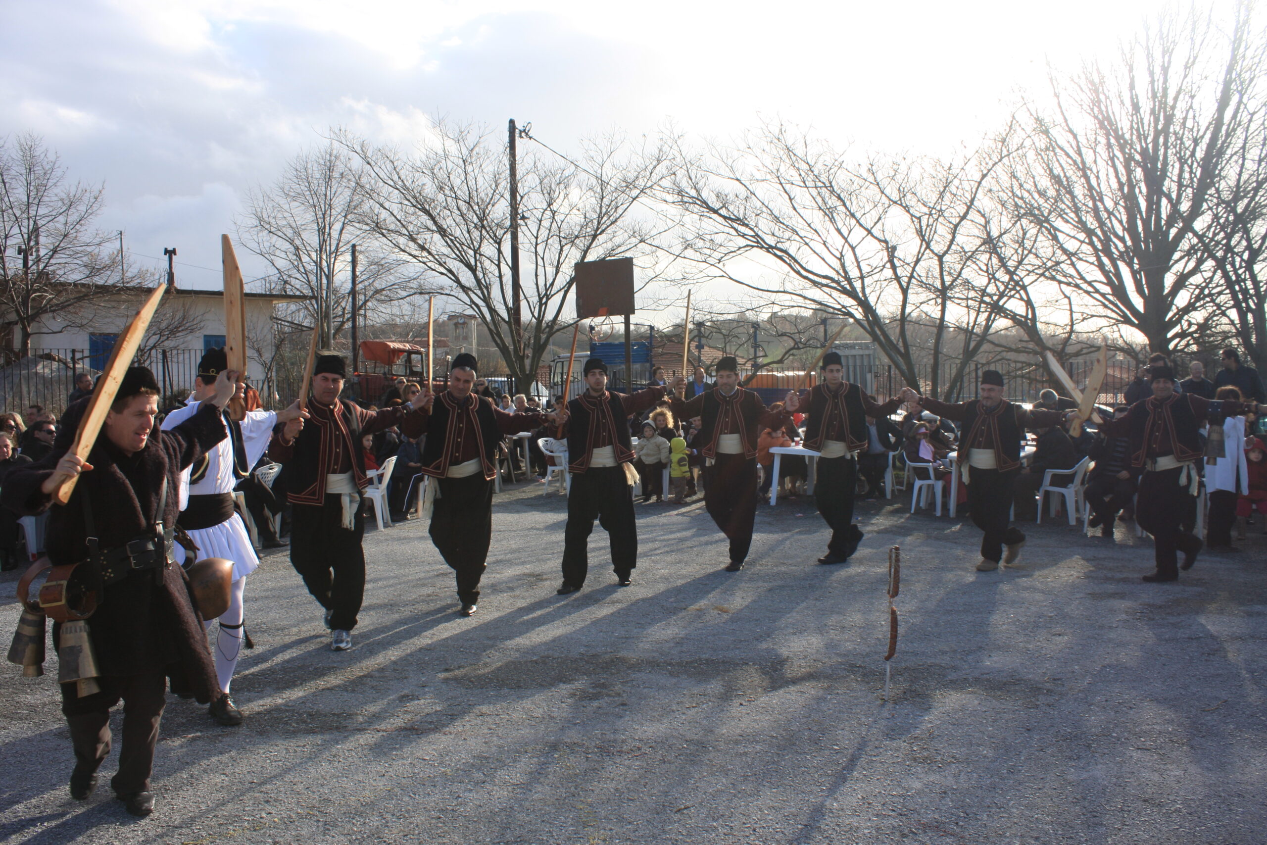 Των Φώτων η ίδια ομάδα, ο «βασιλιάς» και οι «Φωταράδες», η φρουρά του βασιλιά, κρατώντας μεγάλα ξύλινα σπαθιά, χορεύουν στην πλατεία του χωριού έναν κυκλικό χορό. Στο κέντρο είναι καρφωμένο ένα ξύλο, όπου είναι δεμένο ένα λουκάνικο. Το λουκάνικο φυλάει ένας φουστανελάς, κρατώντας ένα μεγάλο δεκανίκι. Ο κόσμος γύρω προσπαθεί να σπάσει το χορό, για να πάρει το λουκάνικο, αλλά απωθείται από τα ξύλινα σπαθιά της Ομάδας.