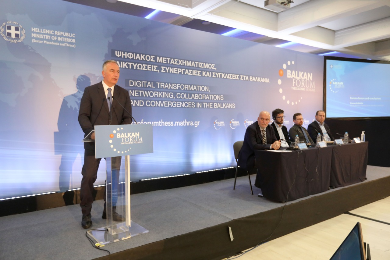 Με τα κύρια συμπεράσματα των τοποθετήσεων που έγιναν στο 4ο Thessaloniki Balkan Forum 2022 που είχε θέμα «Ψηφιακός Μετασχηματισμός, Δικτυώσεις, Συνεργασίες και Συγκλίσεις στα Βαλκάνια» και την πρόταση η επόμενη διοργάνωση να έχει το θέμα «Βιώσιμος τουρισμός, προκλήσεις και ευκαιρίες στα Βαλκάνια», ο υφυπουργός Εσωτερικών (Μακεδονίας- Θράκης), Σταύρος Καλαφάτης έκλεισε τις εργασίες του συνεδρίου.