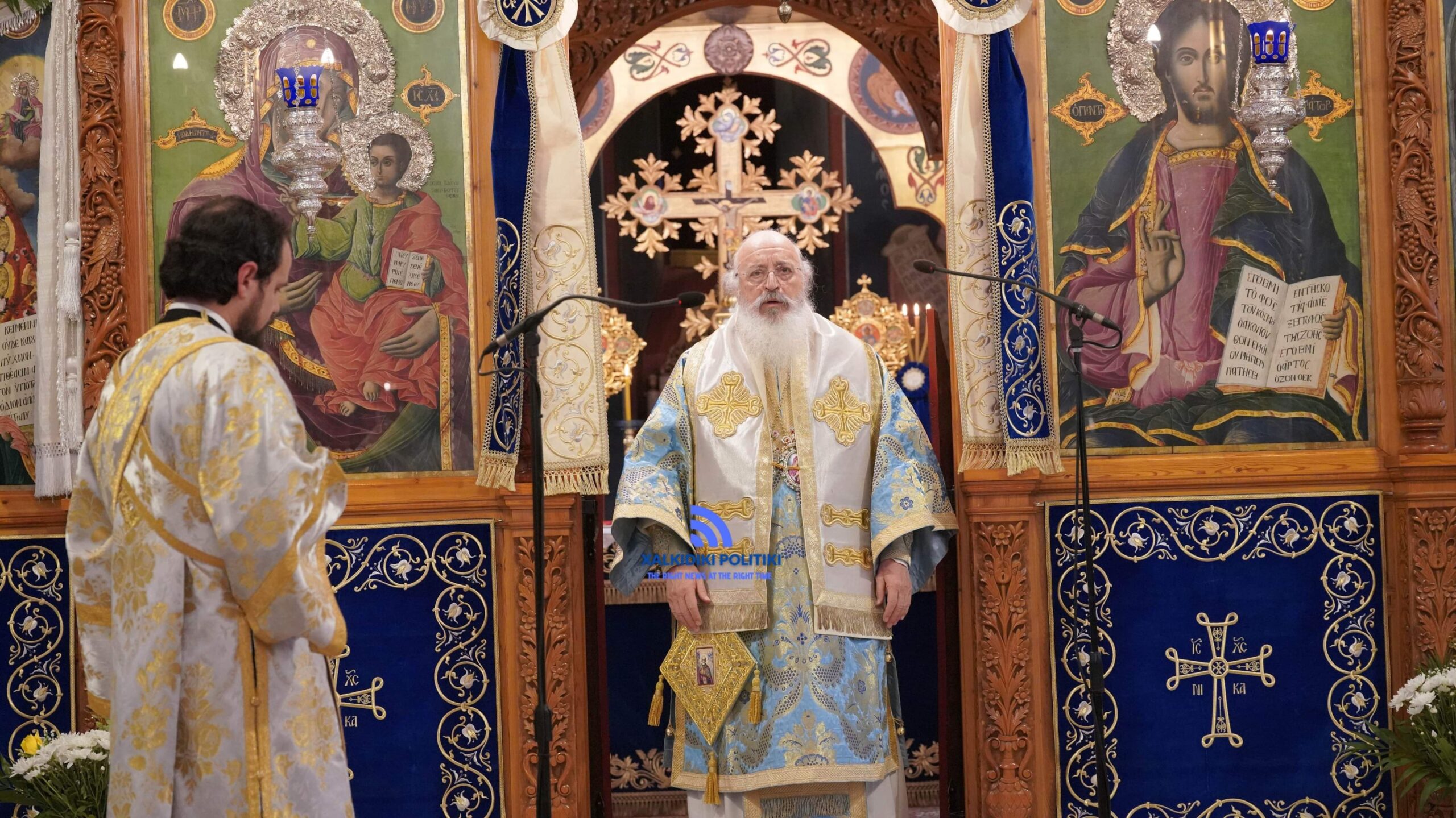 Τελέστηκε αρχιερατική πανηγυρική θεία λειτουργία, χοροστατούντος του Μητροπολίτου Κασσανδρείας κ.κ. Νικόδημου, παρουσία της αντιπεριφερειάρχη Κατερίνας Ζωγράφου, του βουλευτή Απόστολου Πάνα, του νεοεκλεγέντα δημάρχου Γ. Εμμανουήλ, του αντιδημάρχου Χρήστου Βορδού, του πολιτευτή της Ν.Δ. Γρηγόρη Τάσιου και των σωμάτων ασφαλείας που τίμησαν με την παρουσία τους την μεγάλη γιορτή της πόλης!