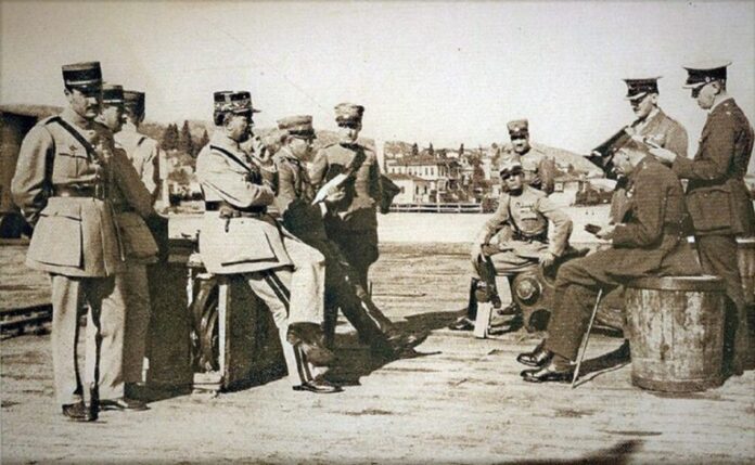 Η τουρκική αντιπροσωπεία στα Μουδανιά, μετά το πέρας των συνομιλιών.