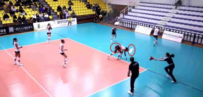 Απίστευτο σκηνικό εκτυλίχθηκε στο γυμναστήριο της Μίκρας, κατά την αναμέτρηση Άρη – ΑΟ Θήρας για τη 14η αγωνιστική της Volley League γυναικών. Κατά το πρώτο σετ, η παίκτρια Αμπότ Σιμόν υποδέχθηκε σερβίς, με την μπάλα να ακουμπά την οροφή, προκαλώντας την πτώση κομματιών σοβά πολύ κοντά στο κεφάλι της.