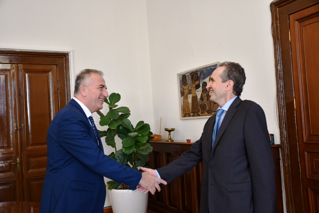 Ο Υφυπουργός Εσωτερικών, αρμόδιος για θέματα Μακεδονίας και Θράκης κ. Σταύρος Καλαφάτης, συναντήθηκε, σήμερα, στο Διοικητήριο, με τον νέο Πρέσβη της Ισπανίας στην Ελλάδα κ. Carles Maria Casajuana Palet.