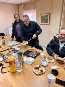 Τα μέλη του εργατικού κέντρου αντάλλαξαν ευχές και έστειλαν μηνύματα για υγεία και ευημερία στο σύνολο του εργατικού κόσμου.
