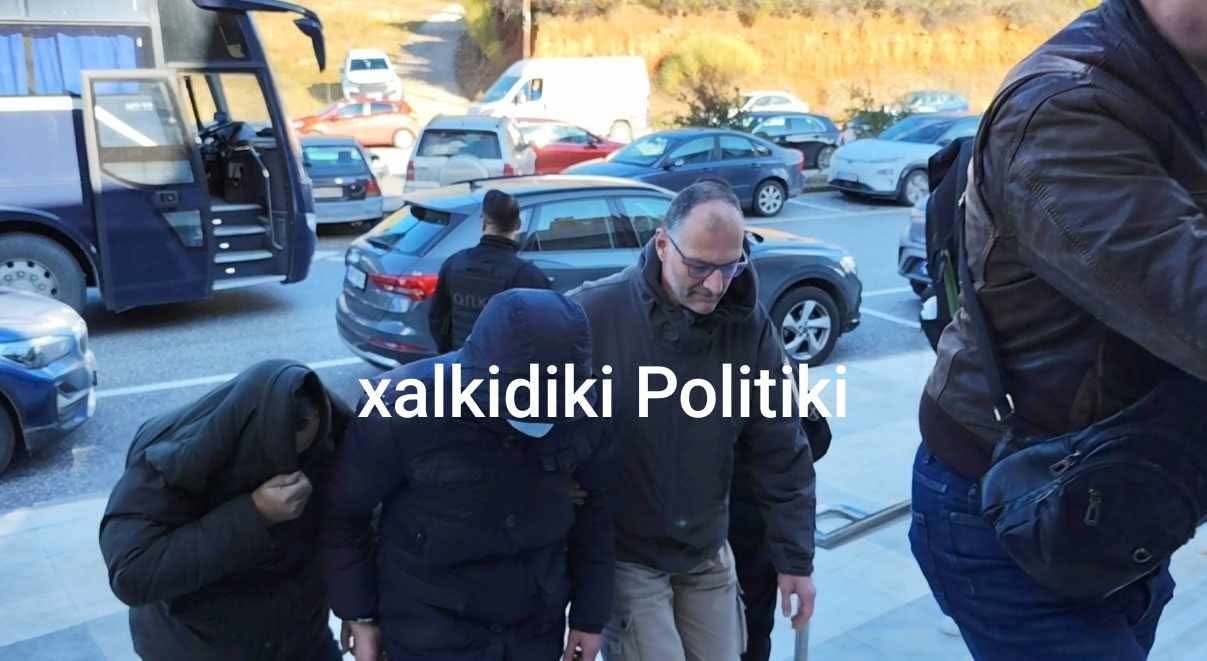 Με καλυμμένα τα πρόσωπά τους και δεμένα με χειροπέδες τα χέρια τους έφθασαν πριν από λίγη ώρα οι συλληφθέντες -που εμπλέκονται στο κύκλωμα των πολεοδόμων- στην Εισαγγελία Πρωτοδικών Πολυγύρου.
