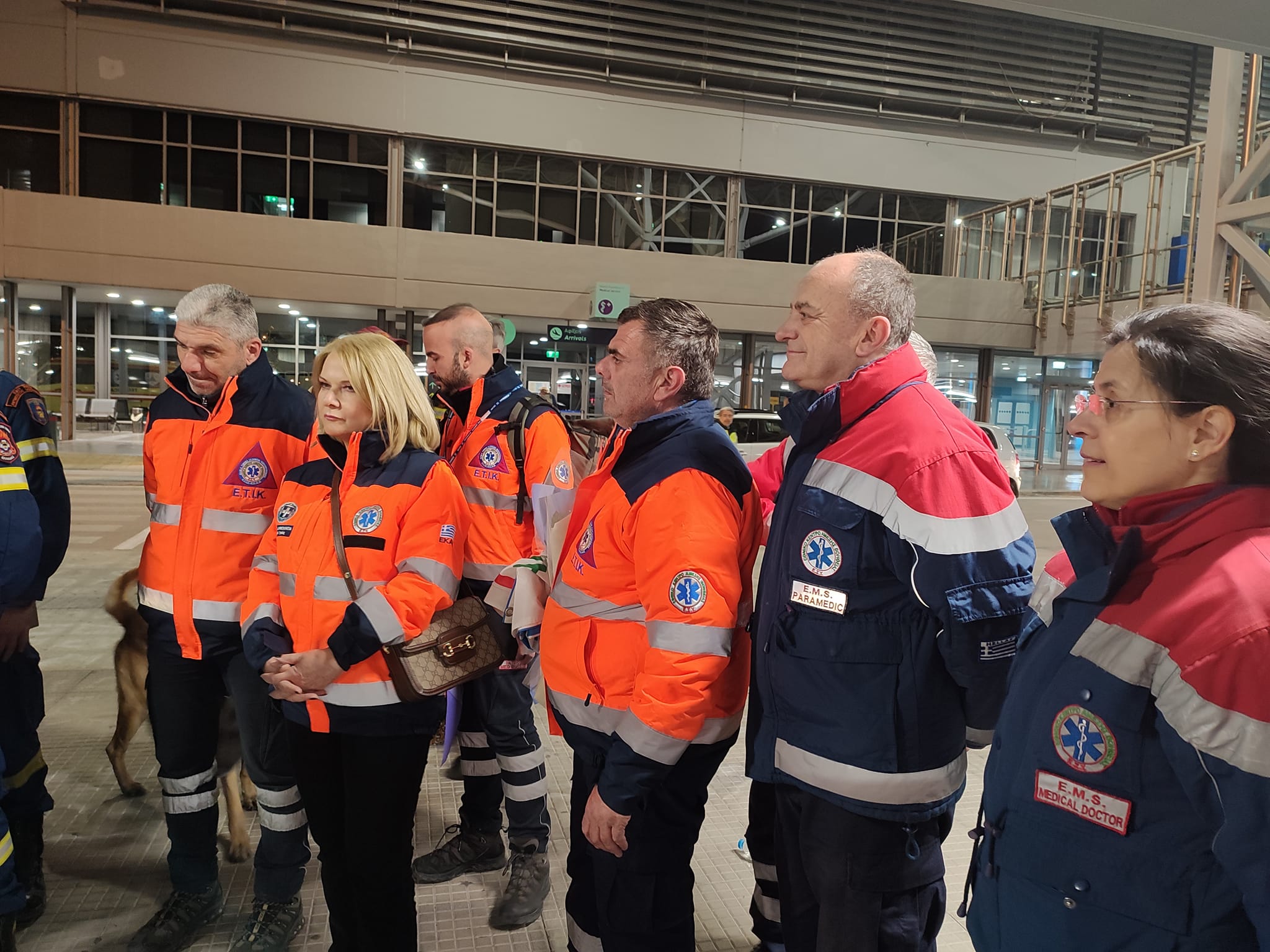 Η Διευθύντρια του ΕΚΑΒ Θεσσαλονίκης κ. Καραμπελίδου Χριστίνα, ο Αναπληρωτής Διευθυντής του ΕΚΑΒ Θεσσαλονίκης κ. Ηλιάδης Κοσμάς, οι υπεύθυνοι του ΕΤΙΚ2, Ιατροί και Διασώστες του ΕΚΑΒ Θεσσαλονίκης, καθώς και οι οικογένειες των συναδέλφων τους παρόντες στο Αεροδρόμιο Μακεδονία, υποδέχτηκαν με αγκαλιές, συγκίνηση και περηφάνια, την αποστολή MUSAR-2 THESS-GR (ΕΜΑΚ2-ΕΚΑΒ2).