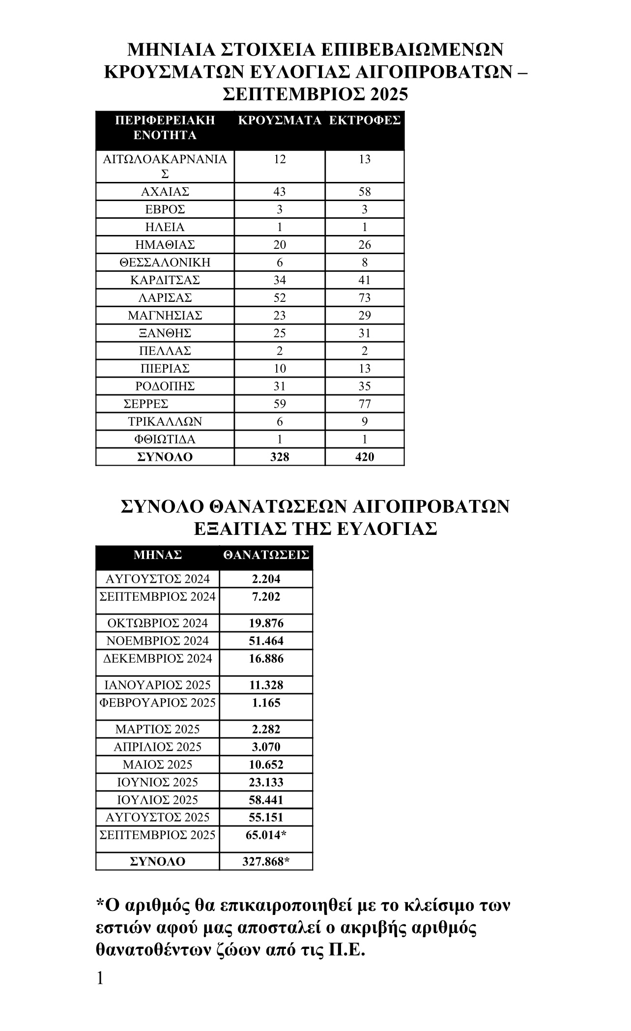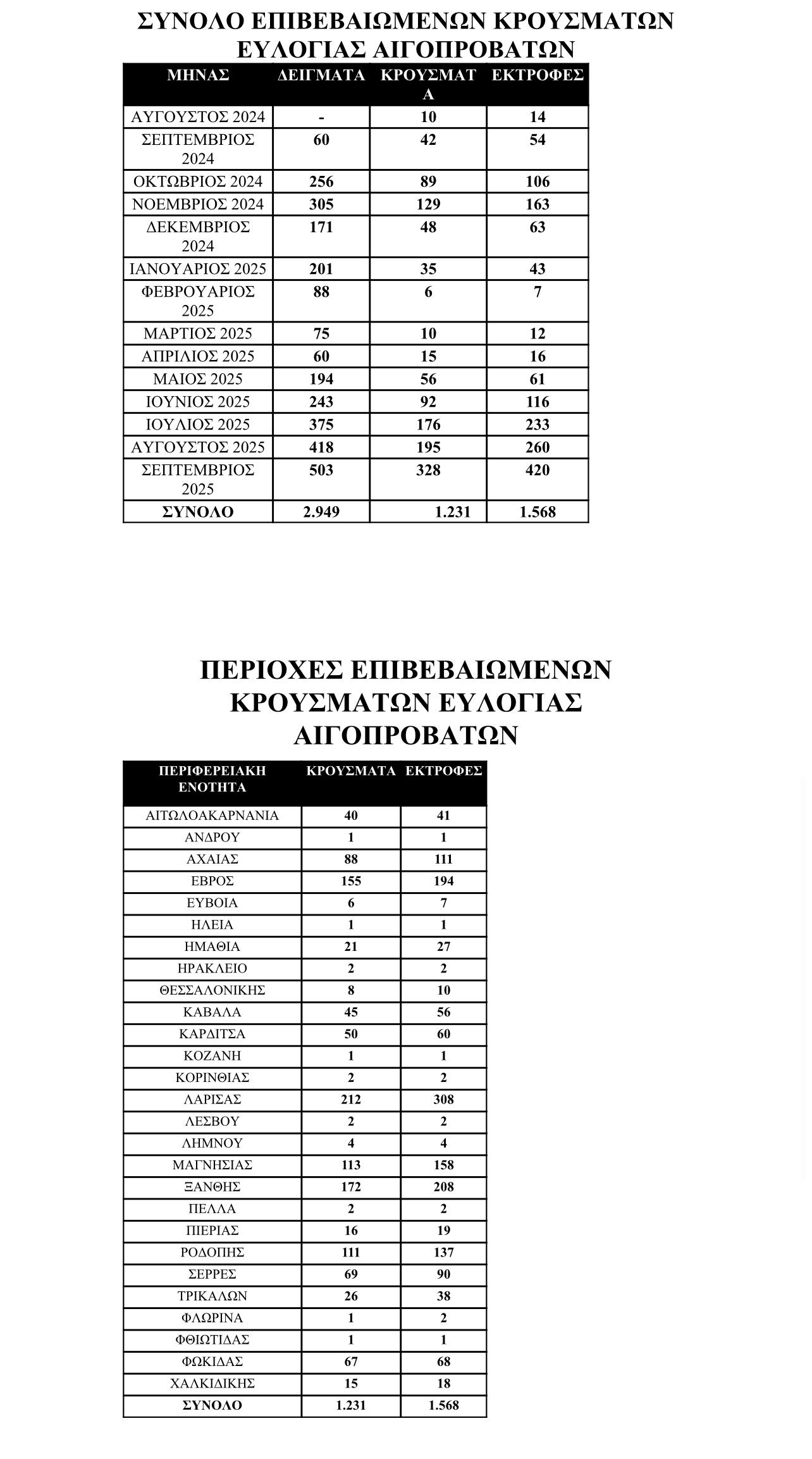 Ακολουθούν τα επίσημα στοιχεία για την πορεία της ευλογιάς των αιγοπροβάτων, έως τέλος Σεπτεμβρίου: