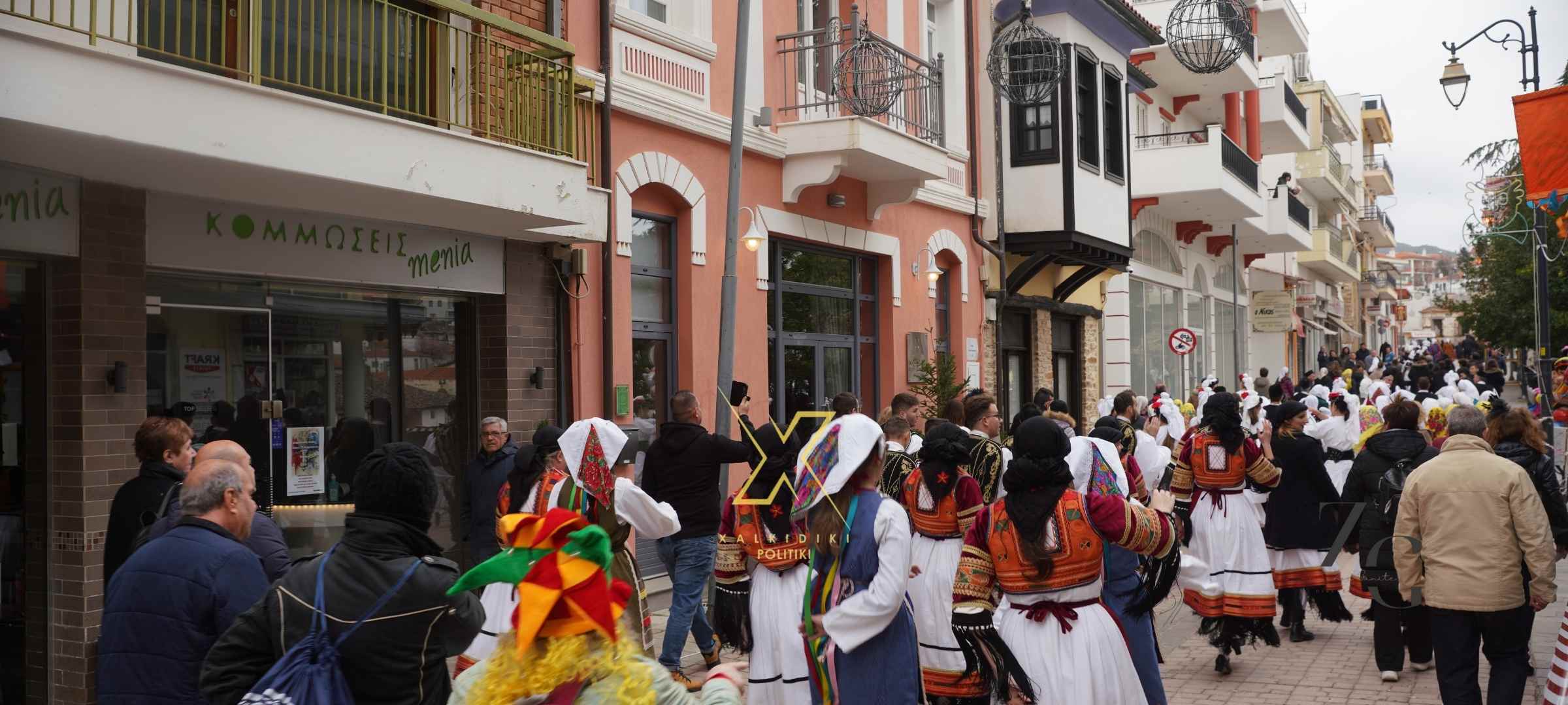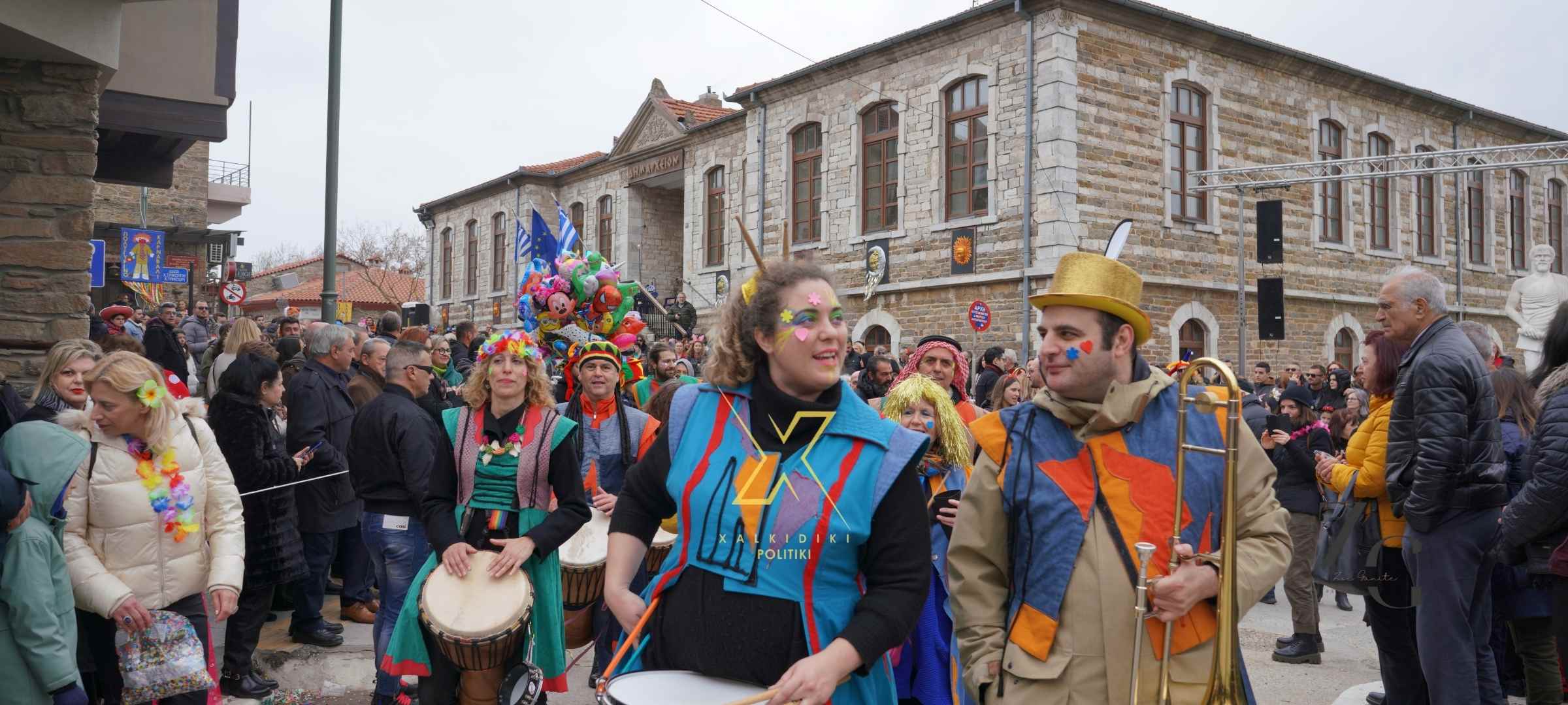 Στις 11:00 στο Δημαρχείο Πολυγύρου προσφέρονται δωρεάν παραδοσιακά κεράσματα για μικρούς και μεγάλους, ενώ στις 11:30 ο Χορευτικός Όμιλος Πολυγύρου παρουσιάζει παραδοσιακούς χορούς. Στις 13:30 ακολουθεί μουσικό warm up και στις 15:00 πραγματοποιείται η Μεγάλη Καρναβαλική Παρέλαση στον Πολύγυρο, στην οδό Πολυτεχνείου Χαρ. Τρικούπη.