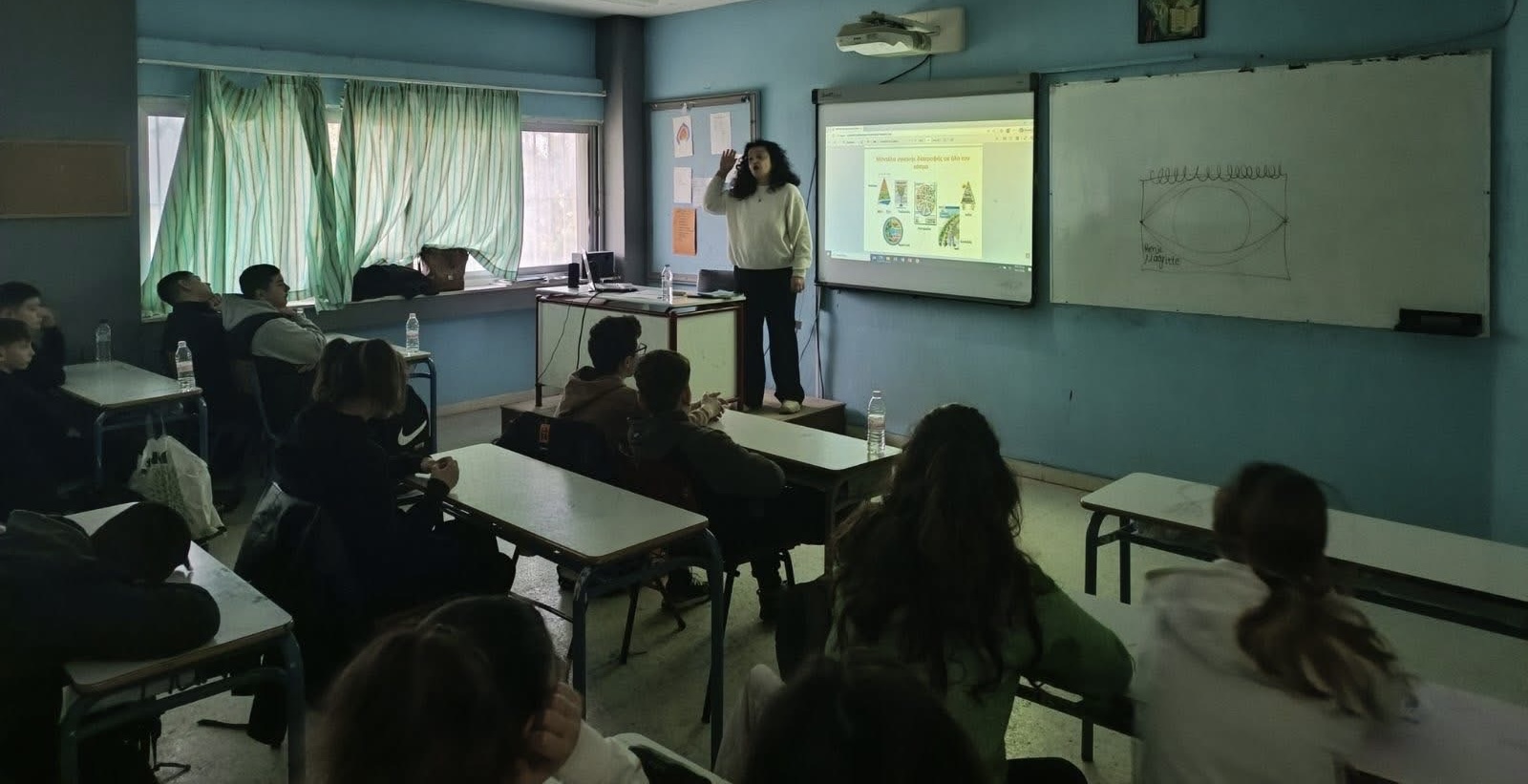 Κατά τη διάρκεια της παρουσίασης, οι μαθητές συμμετείχαν ενεργά σε συζήτηση με παραδείγματα από την καθημερινότητά τους, γνωρίζοντας τις βασικές ομάδες τροφίμων και τον ρόλο τους στη σωστή ανάπτυξη και στη διατήρηση της καλής υγείας. Ιδιαίτερη έμφαση δόθηκε στη σημασία της επαρκούς κατανάλωσης νερού, καθώς και στην ανάγκη περιορισμού της υπερβολικής πρόσληψης ζάχαρης και επεξεργασμένων τροφίμων.