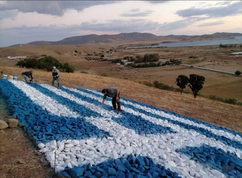 Μια ξεχωριστή πρωτοβουλία νέων ανθρώπων στα Τσιμάνδρια της Λήμνου έχει μετατραπεί τα τελευταία χρόνια σε ένα ισχυρό σύμβολο πατριωτισμού και συλλογικής μνήμης. Με μεράκι, επιμονή και βαθιά αγάπη για τον τόπο τους, δημιούργησαν μια τεράστια ελληνική σημαία από πέτρες, η οποία δεσπόζει στο τοπίο και αγναντεύει το Αιγαίο.