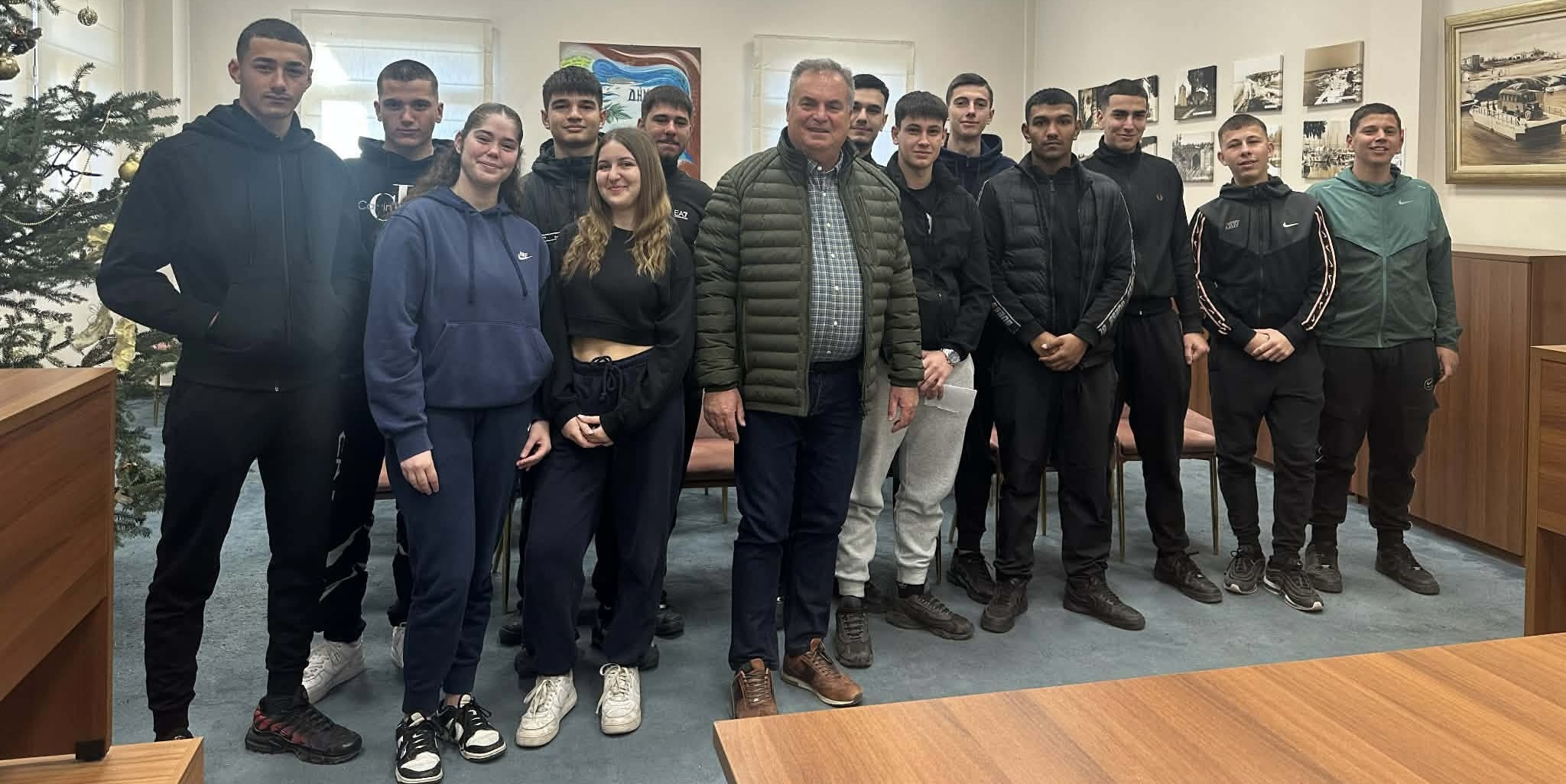 Τον Δήμαρχο Νέας Προποντίδας, κ. Μανώλη Καρρά, επισκέφθηκε η Ομάδα Δενδροφύτευσης του Γενικού Λυκείου Νέων Μουδανιών, προκειμένου να του εκφράσει τις ευχές της για τις Άγιες Ημέρες των Χριστουγέννων, καθώς και τις θερμές ευχαριστίες της για τη διαρκή στήριξη και το έμπρακτο ενδιαφέρον του Δήμου για το σχολείο τους και το περιβάλλον.