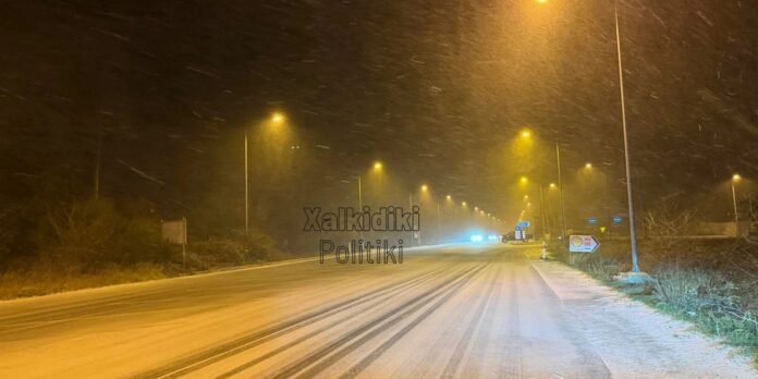 Σε εξέλιξη βρίσκεται η χιονόπτωση στον οδικό άξονα προς Πολύγυρο, με τους οδηγούς να κινούνται με δυσκολία λόγω της μειωμένης ορατότητας και της ολισθηρότητας του οδοστρώματος. Οι συνθήκες απαιτούν ιδιαίτερη προσοχή, καθώς κατά τη διάρκεια της νύχτας υπάρχει αυξημένη πιθανότητα παγετού.