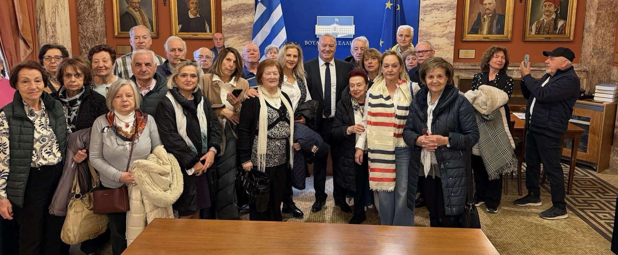 Ξεχωριστή στιγμή αποτέλεσε η ολιγόλεπτη συνάντηση στο εντευκτήριο με τον Πρόεδρο της Βουλής Νικήτα Κακλαμάνη, ο οποίος υποδέχθηκε θερμά τους επισκέπτες και αφιέρωσε χρόνο για συνομιλία μαζί τους.
