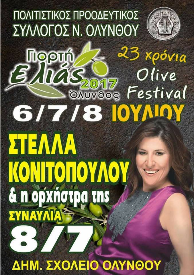 Η γιορτή της ελιάς διοργανώνεται και φέτος για 23 χρονιά, από τον Πολιτιστικό προοδευτικό Σύλλογο Νέας Ολύνθου.