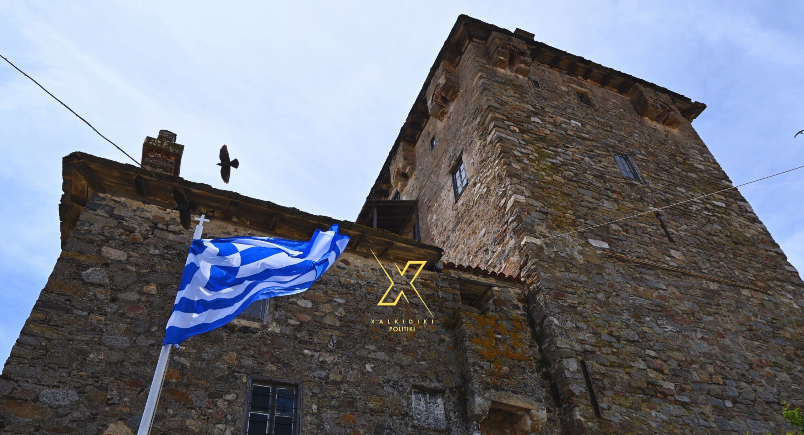 Κάτω από τον ανοιξιάτικο ουρανό, ο Πύργος της Ουρανούπολης υψώνεται σιωπηλός, κουβαλώντας αιώνες ζωής από τον 14ο αιώνα μέχρι σήμερα. Η σημαία κυματίζει μπροστά του, σαν ανάσα ελευθερίας που δεν σταμάτησε ποτέ.