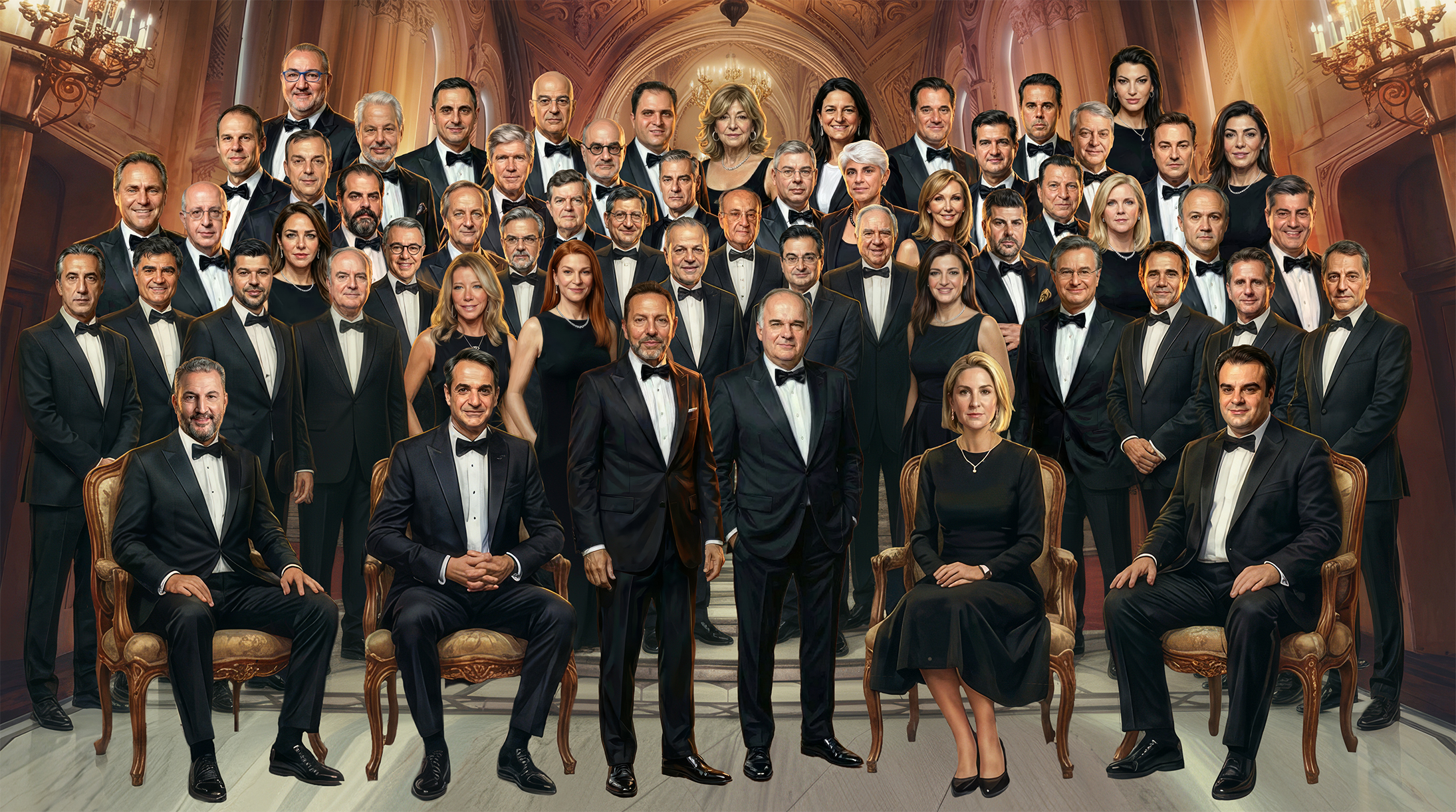 Μαρία Αγγελικούση, Γιάννης Βαρδινογιάννης, Δημήτρης Δασκαλόπουλος, Σπύρος Θεοδωρόπουλος, Σωκράτης Κόκκαλης, Κωστής Κωνσταντακόπουλος, Μαριάννα Λάτση, Θανάσης Μαρτίνος, Γιώργος Μουνδρέας, Αριστοτέλης Μυστακίδης, Ευάγγελος Μυτιληναίος, Γιώργος Οικονόμου, Σεμίραμις Παληού, Δημήτρης Παπαλεξόπουλος, Πέτρος Παππάς, Νικόλας Πατέρας, Γιώργος Περιστέρης, Γιάννης Στασινόπουλος, Γιάννης Στουρνάρας, Μελίνα Τραυλού, Νίκος Τσάκος, Αγγελική Φράγκου