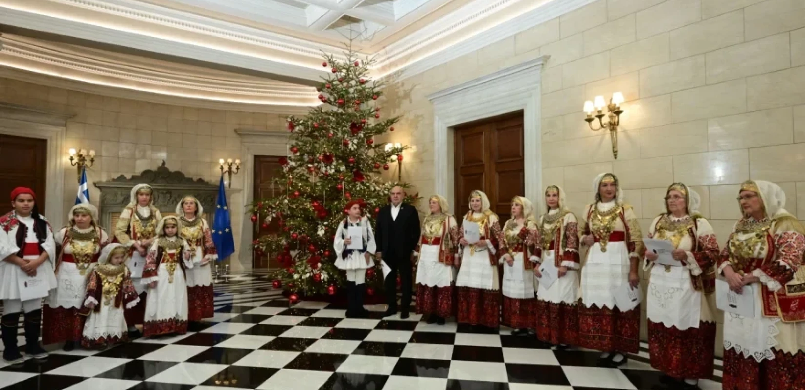 Κάλαντα της Πρωτοχρονιάς άκουσαν στο Μέγαρο Μαξίμου ο πρωθυπουργός Κυριάκος Μητσοτάκης και η κόρη του Σοφία.
