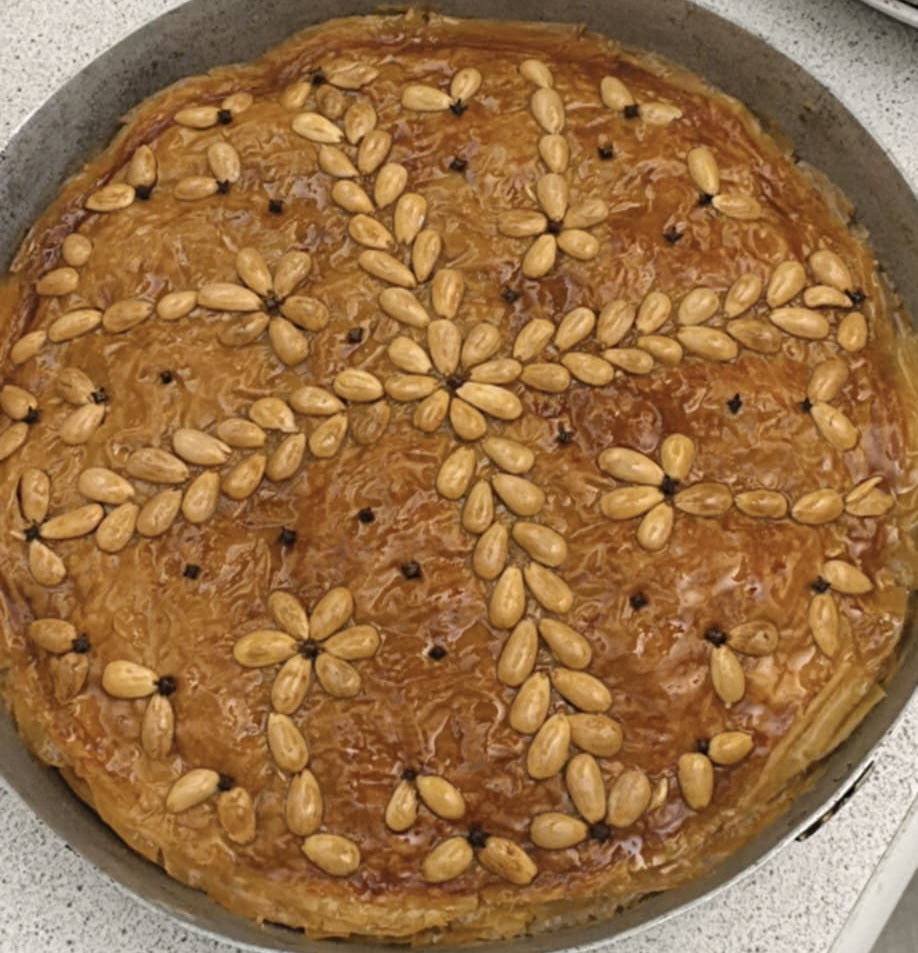 Συνταγή για βασιλόπιτα με φύλλα μπακλαβά από την Παρθενιώτισσα κα. Χριστοδουλιά Γκοντίνου, η οποία αν και δεν ζει πια την άφησε ως “φυλαχτό” στην οικογένειά της.