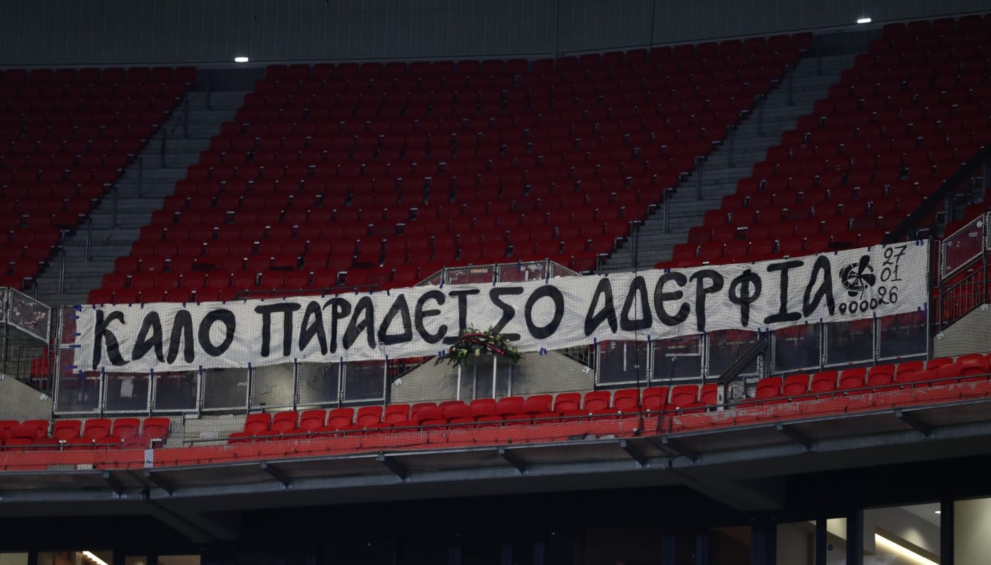 Το πανό με την επιγραφή «Καλό παράδεισο αδέρφια» απέδωσε με λιτό αλλά βαθύ τρόπο τον πόνο και τη συγκίνηση των οπαδών, θυμίζοντας ότι τα «αετόπουλα» που ταξίδευαν για να στηρίξουν την ομάδα τους δεν θα ξεχαστούν ποτέ.