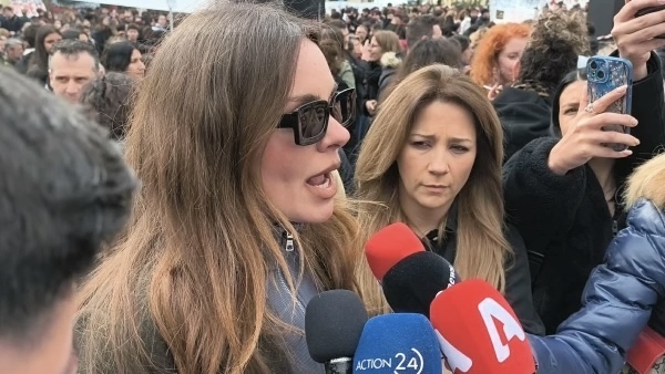 Λίγο πριν ξεκινήσει το συλλαλητήριο για τηνεπέτειο των τριών χρόνων από την τραγωδία στα Τέμπη, η Ευδοκία Τσαγκλή, επιζήσασα του δυστυχήματος, ευχαριστεί τον κόσμο που έχει ήδη συγκεντρωθεί στο άγαλμα Βενιζέλου για να αποτίσει φόρο τιμής στους 57 νεκρούς.
