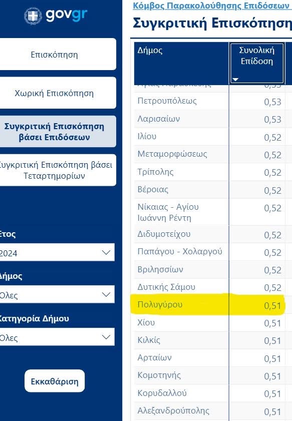 Θετική αποτιμάται η συνολική εικόνα του Δήμου Πολυγύρου, σύμφωνα με την αξιολόγηση που πραγματοποίησε το Υπουργείο Εσωτερικών Ελλάδας για το έτος 2024, κατατάσσοντας τον Δήμο στην 40η θέση μεταξύ 313 δήμων της χώρας.