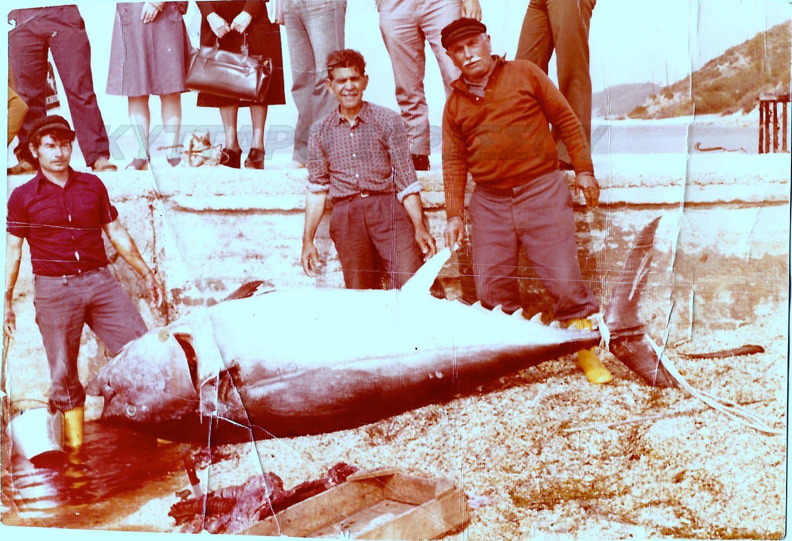 Η εικόνα, που ήρθε ξανά στο φως μέσα από το Κύτταρο Πολιτισμική Ομάδα Ιερισσού, τραβήχτηκε στις 20 Ιουλίου 1974 και αποτυπώνει έναν μεγάλο τόνο, βάρους περίπου 300 κιλών.